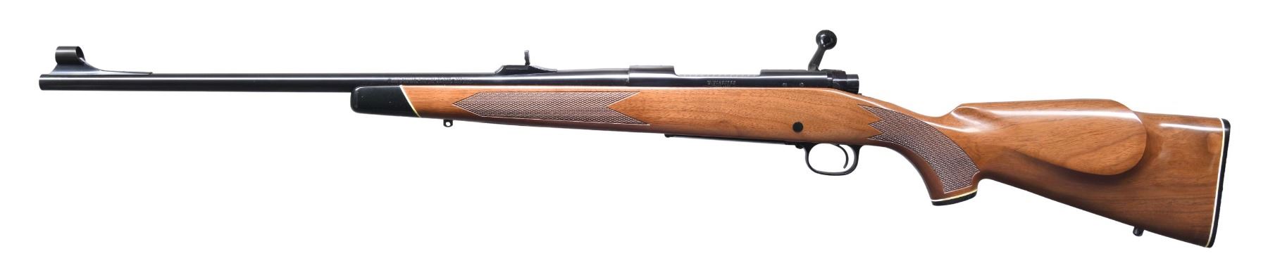 Cal. 270 Win. S#. G1415804. Bbl. 22" w/ hooded ramp bead front & folding leaf rear sight. Push feed action w/ jeweled bolt body, 3 position safety & hinged floorplate. Gloss finished walnut Monte Carlo cheekpiece stock has cut checkering & swivel bases. Black forend tip, grip cap & plastic buttplate have white line spacers. Mfg. 1979. UNATTACHED ACC: original box containing; instructions, hang tag, Hunter's pocket guide, service center list, purchase record & sling swivels. CONDITION. as new, appears unfired. Near excellent bore. (25-792/DS). MODERN. $700-1100.