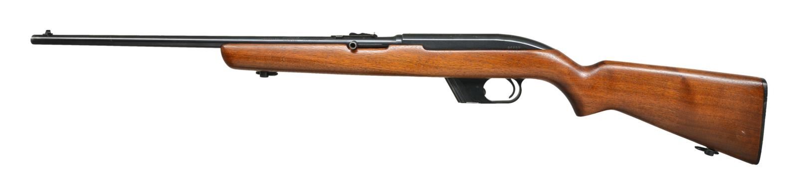 Cal. 22 LR. S# 84250. Bbl. 22" w/ sporting sights. Receiver grooved for tip off scope mts. Walnut pistol grip stock w/ sling swivels & black plastic buttplate. Mfg. 1955-1962. MAGS: 1 detachable 10 rd. CONDITION: very good overall w/ scattered spots of peppery oxidation & handling marks. Spots of blue loss by charging handle & muzzle. Sm. spots of finish loss near buttplate. Bright bore w/ sharp rifling. (21-4299/MD). CURIO. $200-300