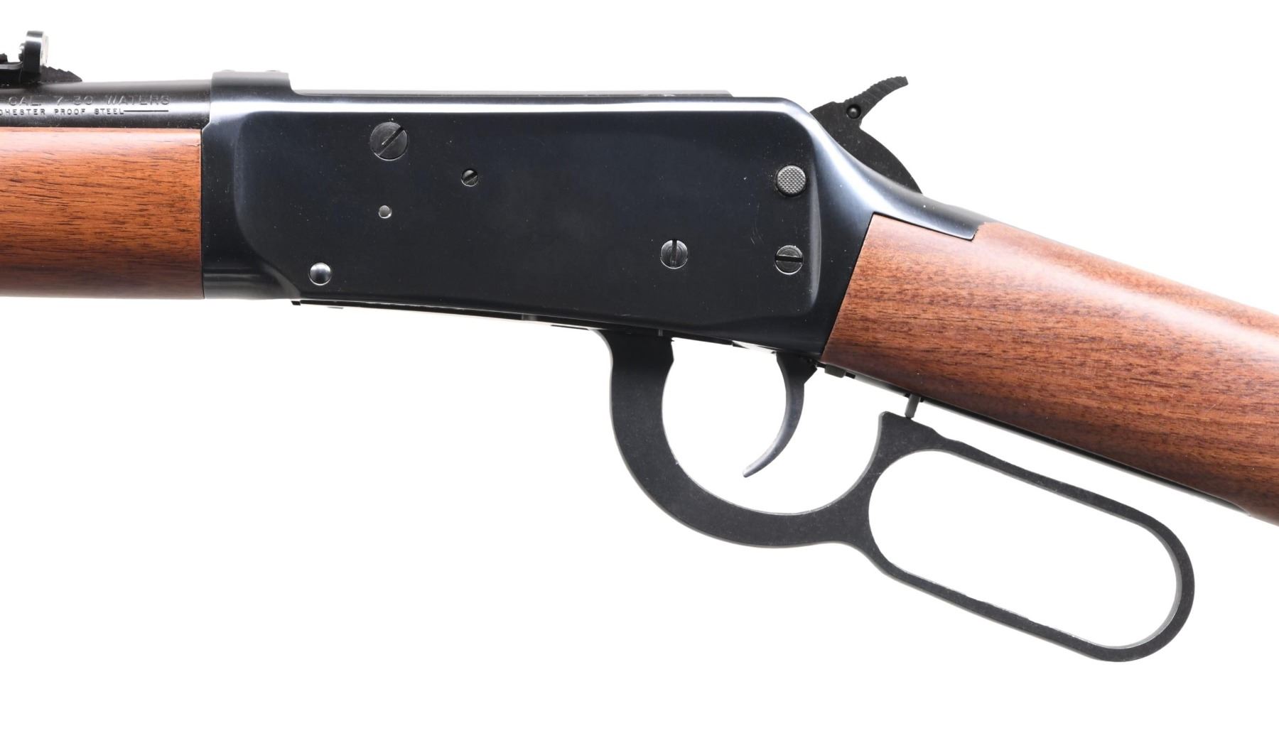 Cal. 7-30 Waters. S# 6000713. Bbl. 20" rnd. Bead front sight w/ hood. Sporting style rear sight. Receiver is factory drilled & tapped for scope mounting. Hammer has extension. Crossbolt safety. Blued finish. Straight grip walnut stock & forend. CONDITION: all aspects near excellent. (24-3371/MJC). MODERN. $500-700.