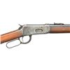 Cal. 32 WS. S# 921120. Bbl. 20” with pinned blade front and carbine leaf rear sight. Full length mag. Gum wood forend and stock with steel carbine butt. Mfg. 1923. CONDITION: 70% barrel and mag. blue. Action has faded to gray with scattered pitting. Original wood finish shows dents and marks. Bore shows scattered pitting. (21-4088/DS). CURIO. $700-1000.
