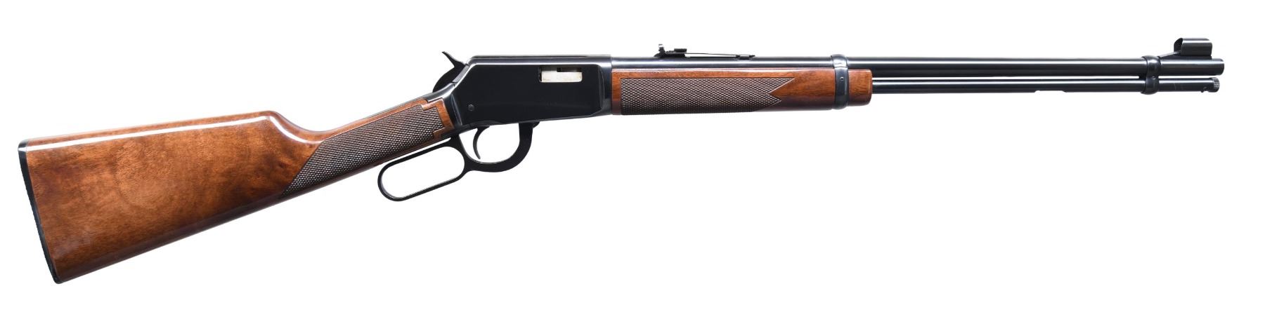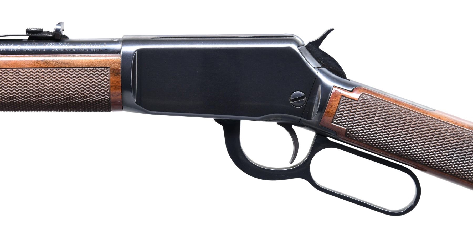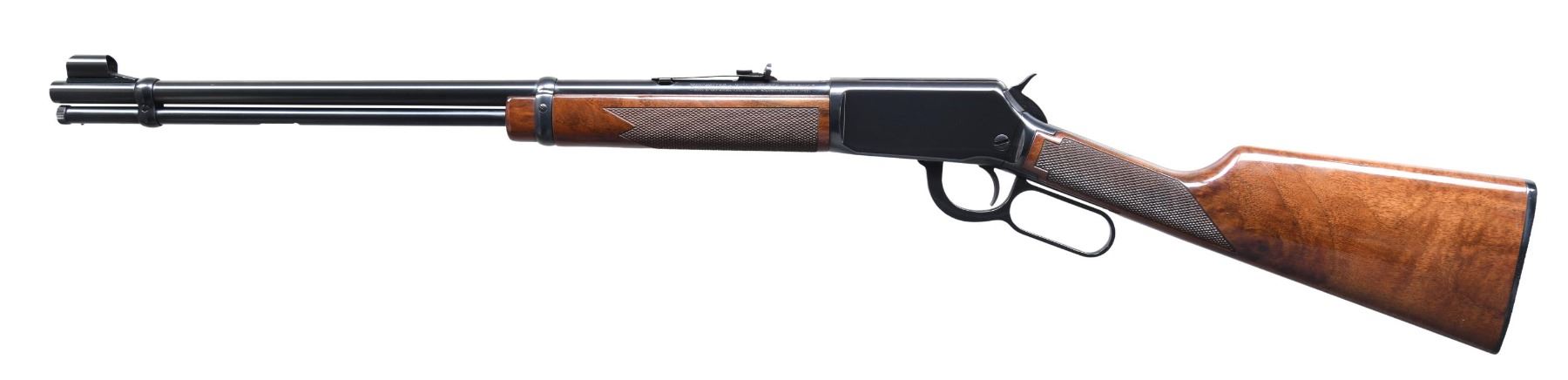 Cal. 22 S, L, LR. S# F487896. Bbl. 20" w/ hooded ramp bead front sight & sporting leaf rear sight. Forearm & straight grip stock of nicely grained walnut w/ cut checkering & plastic buttplate. Mfg. 1981. CONDITION: near excellent retaining over 98% original wood & metal finish. Near excellent bore. (25-702/DS). MODERN. $800-1,200.
