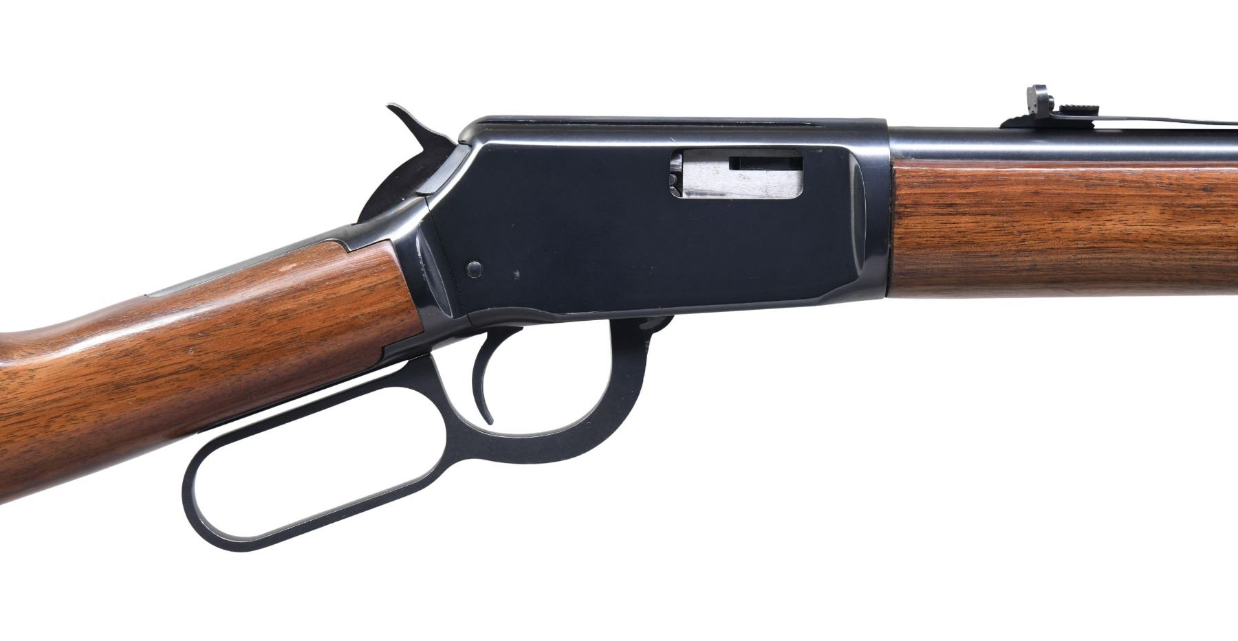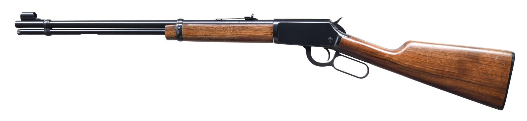 Cal. 22 Mag. S# F204396. Bbl. 20" round. Hooded ramp bead front sight w/ sporting leaf rear sight. Walnut forearm & straight grip stock w/ plastic buttplate. Mfg. 1975. CONDITION: over 98% original blue. Stocks show small dents & scratches. Near excellent bore. (25-635/DS). MODERN. $900-1,200.