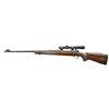 Cal. 30-06 SPRG. S#. 235252. Bbl. 24" with hooded ramp bead front sight and folding leaf rear sight. Redfield Widefield 1 3/4 - 5X20 gloss finished scope with post reticle on Weaver mounts. Bolt has claw extractor and is numbered to rifle. Monte Carlo walnut stock with hand checkering, sling swivels and checkered steel buttplate. 1953 Mfg. CONDITION: very good. Over 97% original blue showing small spots. Dark colored stock has very good original finish and checkering showing small marks. Bright near excellent bore. (22-5636/DS). CURIO. $1,000-1,500.