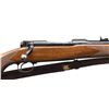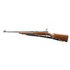 ACTION RIFLE. Cal. 358 Win. S#. 341629. Bbl. 22" light taper. Hooded ramp bead front sight w/ elevator adj. sporting rear sight. Bolt body is numbered to the rifle. Features include claw extractor, 3 position safety & alloy bottom metal. Straight comb checkered walnut stock w/ checkered aluminum buttplate. Military style leather sling on original swivels. Mfg. 1955. CONDITION: over 97% metal finish showing fading on bolt knob & floorplate. Original wood finish shows scattered scratches & marks. Bright near excellent bore. (24-5726/DS). CURIO. $2500-3500.