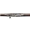 Cal. 303 Brit. S# T34665. Bbl. 25 1/2" with TGI import marking. Blade front sight with protective ears. Ladder aperture rear sight graduated to 1300yds. Matching numbers on bolt & socket. Other parts appear mismatched or unnumbered. Left side of socket has 1943 date, serial number & BSA M/47 marking. Receiver ring has five pointed star marking. Hardwood stock set with bottom mounted sling swivels. MAGS: 1-10 rd. numbered to a different gun. CONDITION: stock set has an arsenal rework appearance with a couple armorer splice repairs on butt, some chipping around buttplate tang, overall heavy finish wear, dings, abrasions & handling marks. Metal is mostly a silvery-gray color with traces of Suncorite finish, some denting on bottom of mag, scattered oxidation, handling marks Action functions properly when hand cycled. Bright very good plus bore with some light frosting. (25-6581/MJC). CURIO. $300-500.