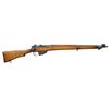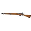 Cal. 303 Brit. S# T14581. Bbl. 25 1/2" w/ import marking. Mismatched bolt, no other visible numbered parts. Left side of receiver marked "No. 4 MkI". Left side of socket has serial number & 1942 date. Flip up rear sight w/ 300 & 600yd apertures. Blade front sight w/ protective ears. Hardwood stock set w/ bottom mounted sling swivels. CONDITION: refinished stock set w/ added varnish, a chip at heel, a 2" crack at heel, scattered dings & handling marks. Metal shows an arsenal blue finish that is thinning to gray. Frosted bore w/ scattered light pitting. (22-3792/MJC). CURIO. $300-500.