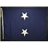 42” x 62” blue bunting field with two large cotton double applique vertical placed stars. Stenciled on hoist “REAR ADM SET 4 MI 44”, rope hoist. This flag was adopted in 1940 replaced same pattern used 1906-1940 with red field. This flag is flown on ship when rear admiral is aboard. CONDITION: very good to fine overall. (02-17547-86/JS). $300-400.
