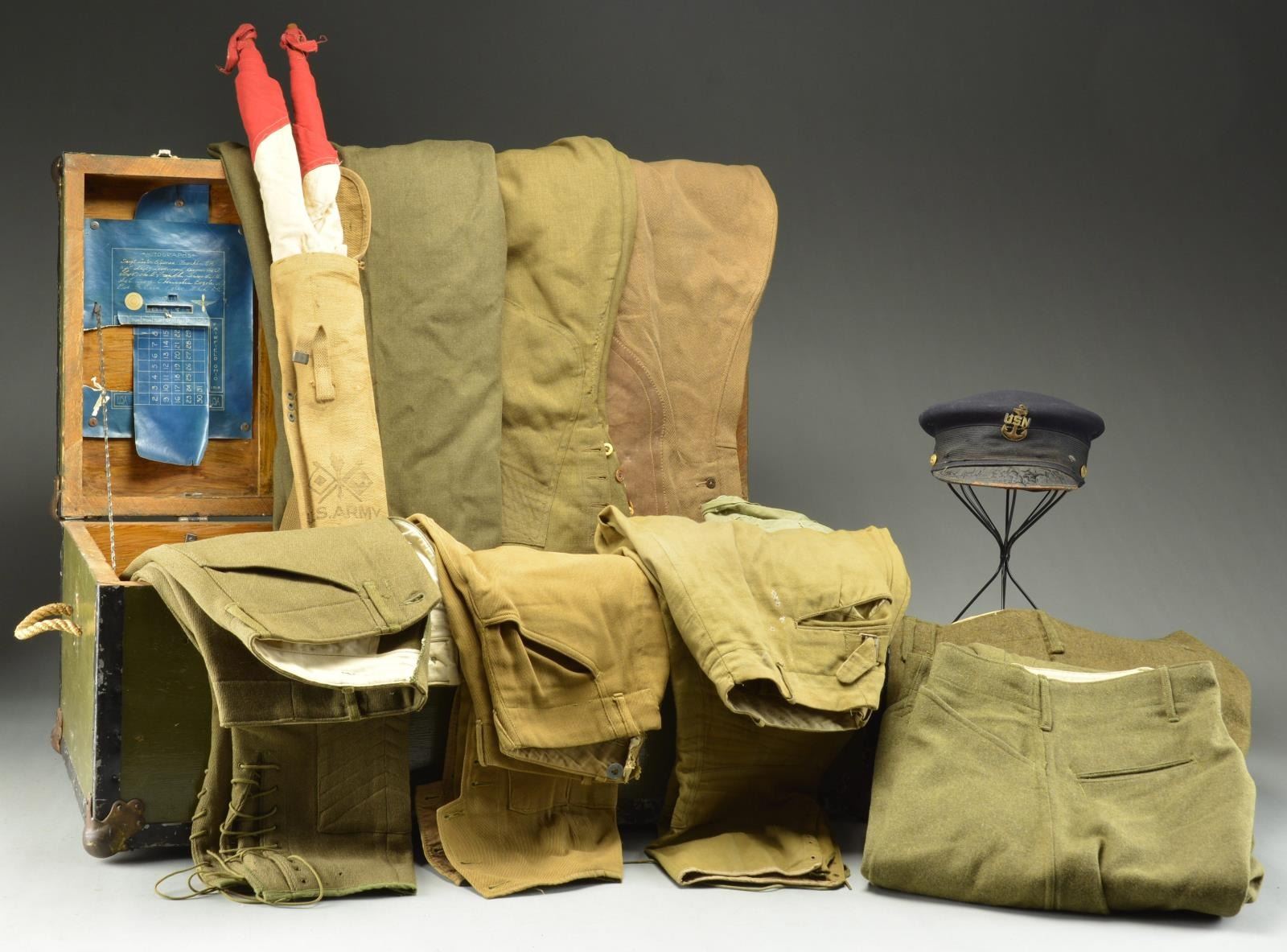 WWI ERA AIR CORPS TRUNK, UNIFORM PANTS & MORE.