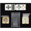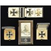 This varied lot includes a flat 1st Class Iron Cross with magnetic center surrounded by silver. Cross has a wide pin on the reverse & is housed in its original issue box. / 1 flat 1st Class Iron Cross with magnetic center surrounded by silver. Cross has a wide pin on the reverse numbered "L73" & is housed in its original issue box. / A 2nd Class Iron Cross with magnetic center surrounded by silver. Cross is housed in its original issue box with a length of ribbon at the top. / 1 Vaulted 1st Class Iron Cross with magnetic center surrounded by silver. Cross has a straight wide pin on the reverse. / 1 Scarce Grand Duchy of Mecklenburg-Schwern 1914 War Cross 1st Class. / 1 Small 6" x 3 1/2" framed photograph of a WWI Iron Cross winner in uniform. CONDITION: all items show light wear. All cases show light wear but are fully functional. (02-16417-3/BF). $700-1,100.