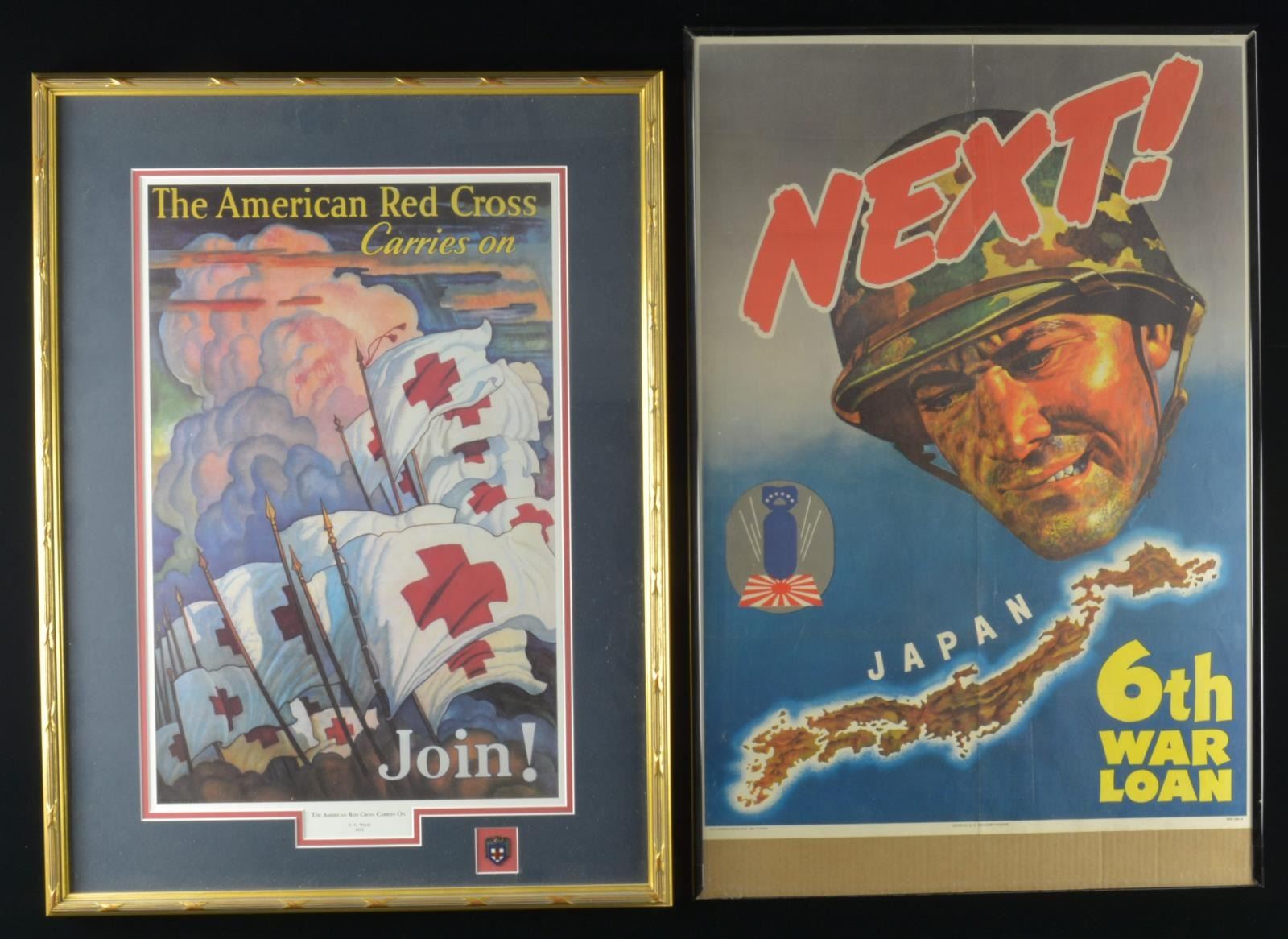 2) This poster measures approx. 20" x 28". The poster depicts an American GI staring at the island of Japan. The poster reads, “NEXT! 6TH WAR LOAN”. Poster is marked at the base, “U.S. GOVERNMENT PRINTING OFFICE : 1944”. Poster has a tear in the center of the top.
