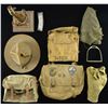 This group includes 1 WWII Technical Corporals Ike jacket for the 71st infantry division. There is a ruptured duck patch above the right breast pocket. / 1 Foul weather jacket with an interior label that reads “JACKET, INTERMEDIATE, COLD WEATHER (A-2) CONTRACT NO. DSA-100-865 SIZE MEDIUM (38-40)”. / 1 Section of netting possibly for a helmet cover. / 1 Pair of WWI style hobnail boots with metal heel cleats. / 1 Table lamp made from an artillery shell & 4 rifle rounds. / 1 WWI gas mask in a khaki carrying bag complete with shoulder strap. / 1 M1A2-1-1 non-combatant gas mask in original pouch. / 1 Nickel stirrup. / 1 WWII over the shoulder cotton khaki bag with a painted 17th airborne insignia on it along with a painted 517th attack insignia. / 1 Heavy canvas equipment pouch possibly for a radio. / 1 Officers campaign hat. / 1 M1 carbine 30-round clip. CONDITION: all items show light to moderate wear. Lamp was not tested for functionality. (02-16895/BF). $400-600.