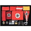 WWII GERMAN BELT BUCKLES, ARMBANDS, BINOCULARS,