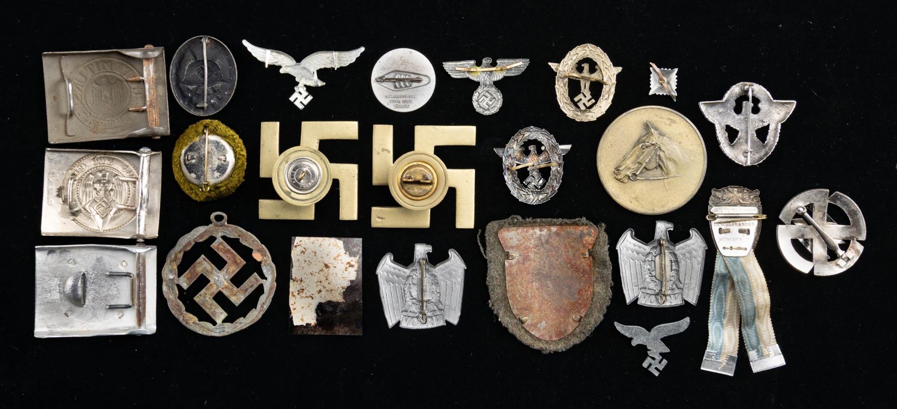 WWII GERMAN BUCKLES, PINS, INSIGNIS, AND MORE.