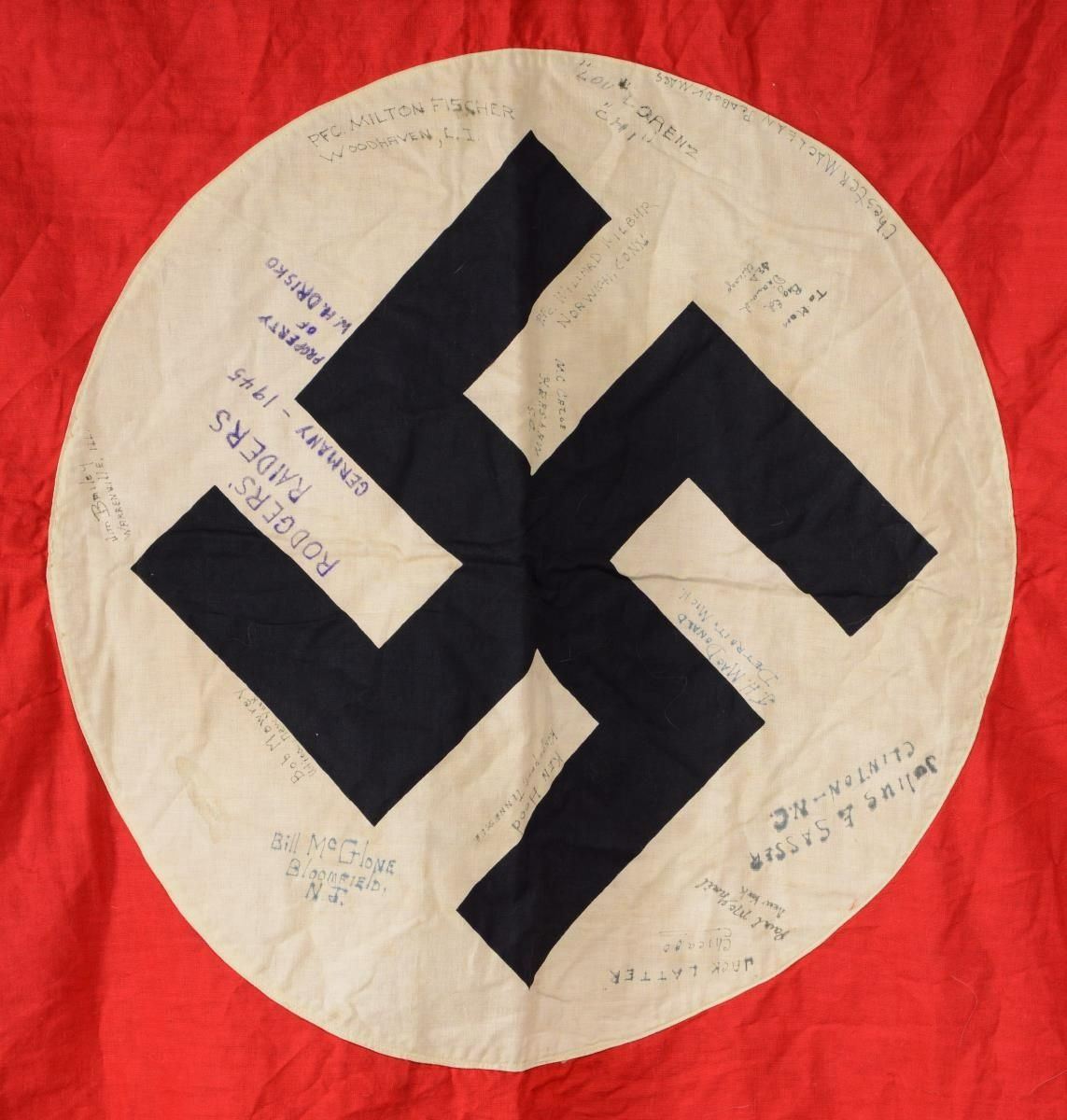WWII GERMAN FLAG CAPTURED BY ROGERS' RAIDERS.