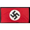 1) WWII German party flag measuring 51" x 27". 2) WWII German Party flag measuring 29 1/2" x 45 1/2". 3) WWII German Party flag measuring 29" x 57". WWII German Party banner measuring 79" x 37 1/2". CONDITION: all flags and banners show light wear. (02-25437/BF). NON-GUN. $500-750.