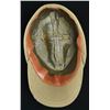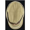 A dull field green RAD officer’s grade cap, often referred to as a “Robin Hood” cap. Cap is a fine grade wool with the body constructed in 4 pieces. The ear flaps & visor have silver bullion piping. There is a brown 2" cloth strip in the front with an enameled RAD insignia. There are 2 vent holes on either side of the body. Brown leather like sweatband with gray green rayon lining. CONDITION: there is one noticeable moth nip towards the rear crown of the cap. Sweatband shows light wear and there are significant sweat stains on the interior. PROVENANCE: from the Lifelong Collection of Glen E. Mattox. (02-18247/BF). $400-700.