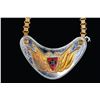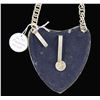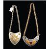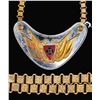 NSRKB STANDARD BEARERS GORGET.1) A scarce WWII German SA or early SS standard bearers gorget. This gorget has a plated body and central early Party eagle roundel with gilded suspension bosses and multi-rayed 8 pointed star. The reverse has black felt and a round metal "RZM" mark. Multi-linked neck chain is complete. CONDITION: light wear throughout. 2) Nice engraved NSRKB standard bearers gorget with gilded bosses and central flag & wreath motif on a plated gorget body. Gilded suspension chain with alternating Party symbol and Maltese cross motifs. The top of the gorget is engraved " Kriegerkameradschaft Geispolsheim-Bahnhof". The reverse has black felt. CONDITION: light wear overall. (02-24883/BF). NON-GUN. $600-900.