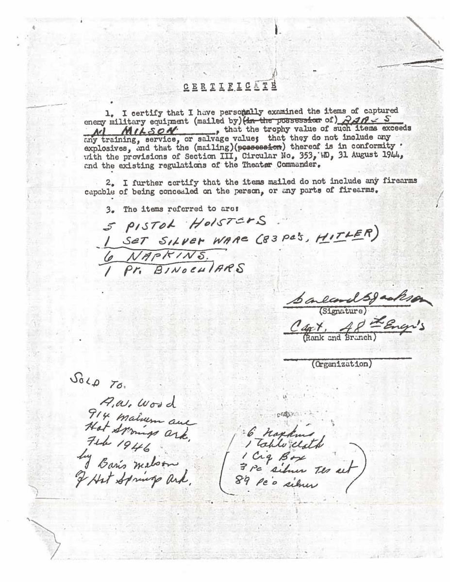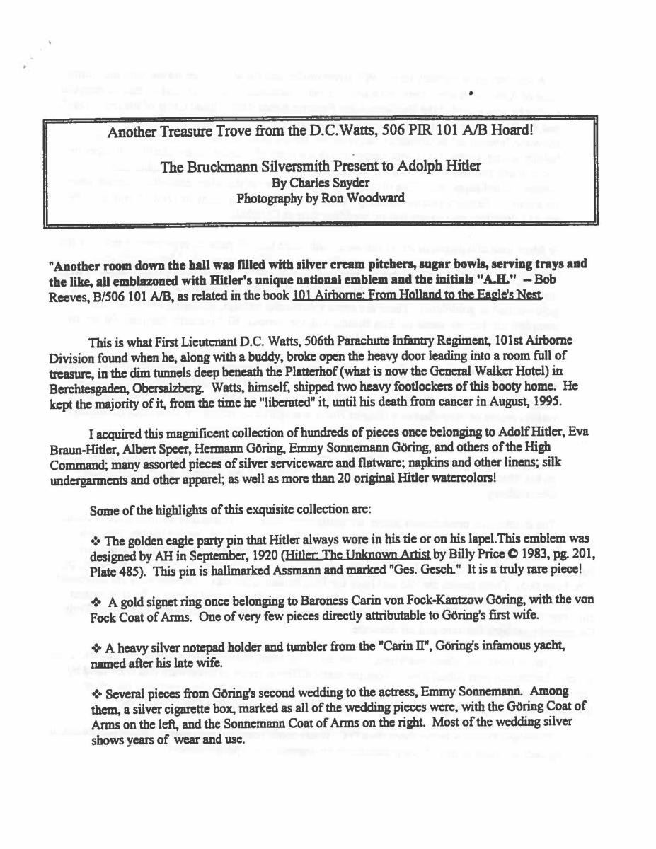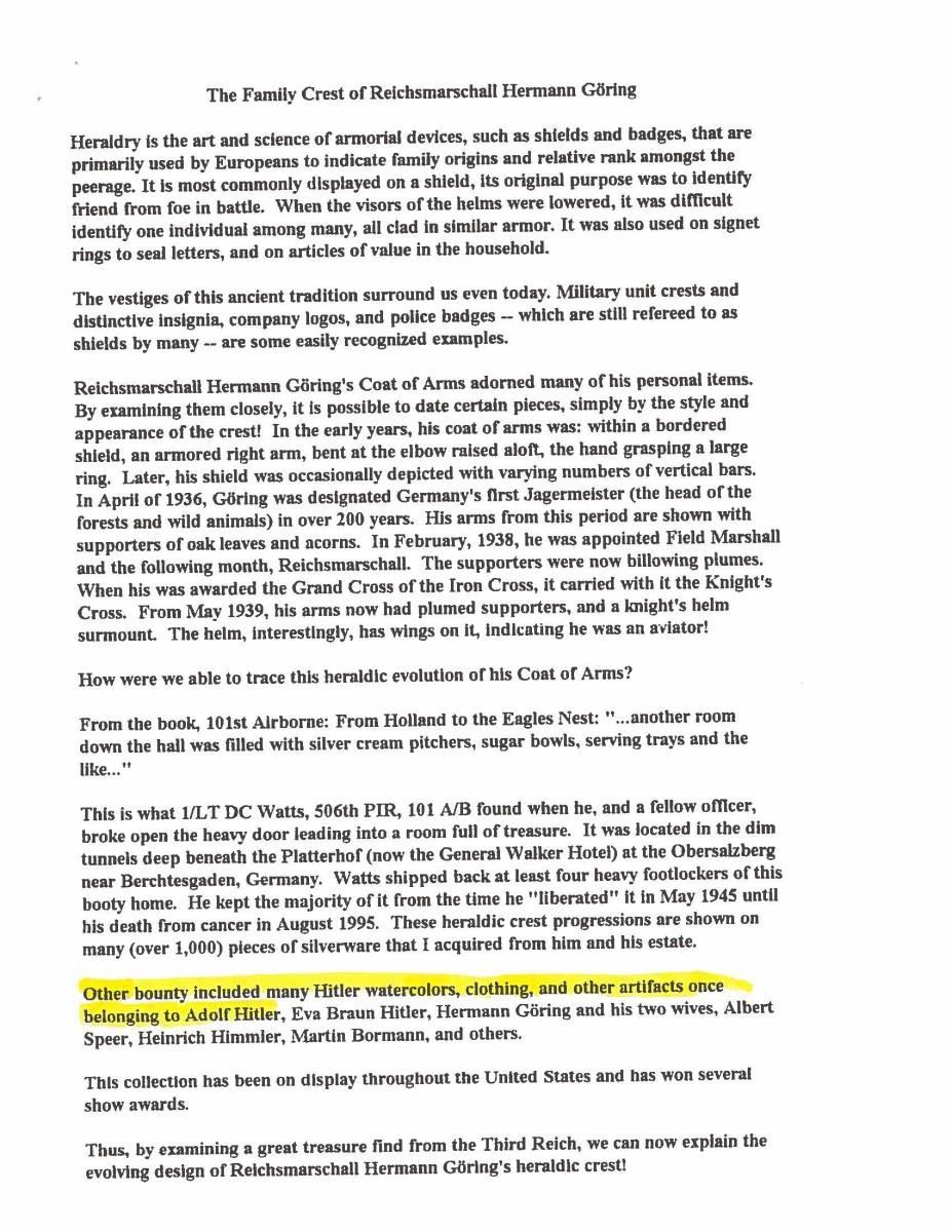 HITLER’S PERSONAL FORMAL SILVER DINNER SERVICE.