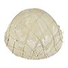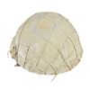1) HELMET. A standard issue Japanese WWII army helmet with a star on the front. The helmet has a dull green cotton liner with a knotted net covering over the liner. The cover also features a sewn cloth star on the front. 6-tongue leather liner and cotton woven chinstrap. There are visible white painted Japanese characters on the inside front of the helmet. CONDITION: helmet cover is quite solid with some wear through at the front edge. The body of the helmet has not been examined because the cloth & netting are original to the helmet and prevent removal of the cover. Liner and chinstrap show light to moderate wear throughout.