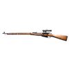 RIFLE WITH SNIPER SCOPE. Cal. 7.62x54R . S# 77706. Serial number appears on the left side of the bb. over the chamber. Original serial number "PC9201" appears on top over the chamber and on bolt, body, floor plate, and butt plate. Bbl. 28 3/4". Import-marked on the left side of the receiver. Rifle has original "PU" telescopic sight in a reproduction mount. The scope is marked on top with a "25" in a triangle, "M (5-pointed star) (hammer & sickle) (half moon) 91/30 NO5-22597." Screws in turrets have domed heads. Scope reticle has a pointed post and two horizontal bars. Tangent rear sight graduated to 2000 meters. Post front sight with protective hood. Bbl. is marked over the chamber with a hammer & sickle in a wreath and an arrow in a triangle. Dated 1944. Turned-down bolt handle has been added. Cleaning rod is present. Hardwood stock set with sling slots. Buttstock is marked on the right side with an encircled "IO," indicating Bulgaria, and has an indistinct circular marking due to arsenal rework finish. UNATTACHED ACCESSORIES: leather scope lens covers. CONDITION: stock set has moderate wear, staining, and handling marks, with its arsenal rework-type finish. Notable missing chip of wood below the scope mount on the left side. Metal retains a large degree of its arsenal rework blue finish, with thinning and light wear. Handguard tips have notably little finish. Scope and mount retain most of their blue finish. Optics appear clear and serviceable. Good, shiny bore with a hint of frosting in the grooves. (24-5997/RW). CURIO. $800-1,200.