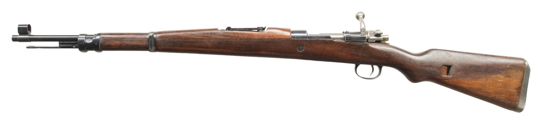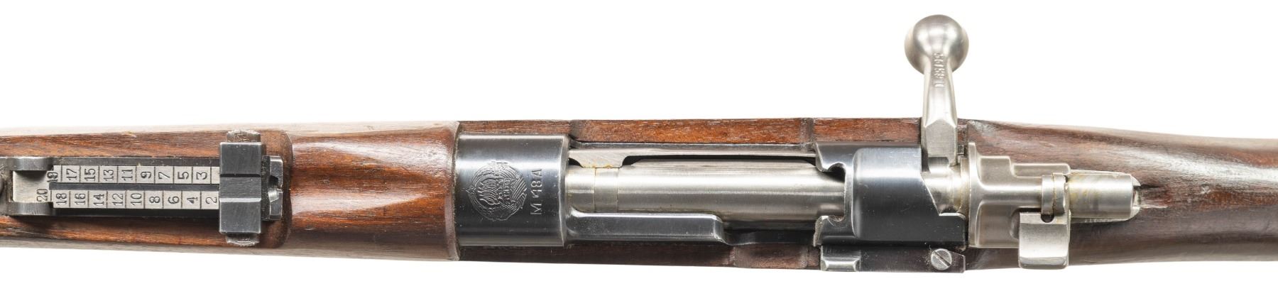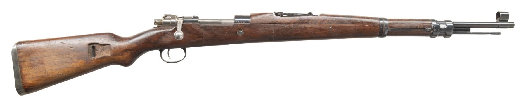 Cal. 8mm Mauser. S# P68199. Bbl. 23 1/2" with Cherry's import marking. Standard M48 sights with hooded front. All visible matching numbers. Receiver ring has Communist Yugo crest with M48A marking. Arsenal blue finish. Hardwood stock set with left side sling provisions. Cleaning rod present. CONDITION: stock set has added finish with scattered dings, handling marks & finish loss. Metal retains 97% arsenal rework blue with scattered edge wear & handling marks. Action functions properly when hand cycled but appears to have cosmoline buildup inside bolt. Bright near excellent bore. (25-6595/MJC). CURIO. $300-500.