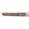 KATANA. A scarce and fine katana with a shobu-zukuri blade in a shirasaya measuring 32 1/2" overall with a 24 1/2" blade. Blade has a straight hamon with a 12 1/2" narrow hi and a wider, shorter hi extending from the habaki for 7 1/2". Silvered habaki with vertical ridges. The nakago has a single mekugi-ana and there is an 8 character signature on one side. Classic shirasaya in lightly colored wood with a black inked inscription. Shirasaya is protected by silk embroidered bag with a black inked inscription. CONDITION. blade has a fine polish but there are 2 very small areas of light oxidation. Shirasaya shows the usual scuffs and scrapes. 2) KATANA. A fine katana blade in a shirasaya measuring 38 1/4" overall with a 27 3/4" blade. Blade has a irregular hamon. The nakago has a single mekugi-ana and there is an 8 character signature on one side and a 7 character signature on the other. Classic shirasaya in lightly colored wood with a black inked inscription and "America" written on one side. CONDITION. blade has a good polish but could use some freshening. Shirasaya shows expected wear. (02-24100/BF). NON-GUN. $700-1200.